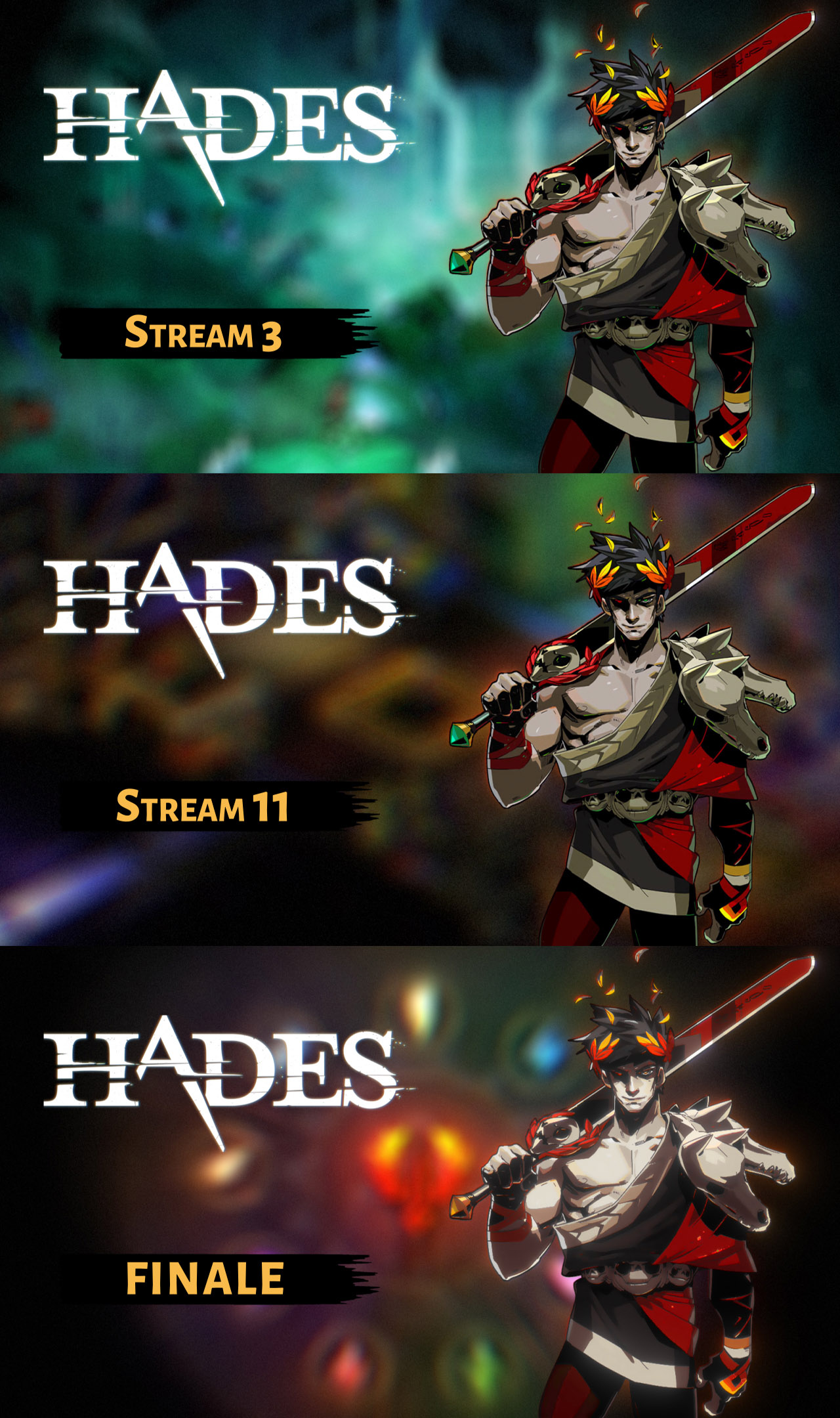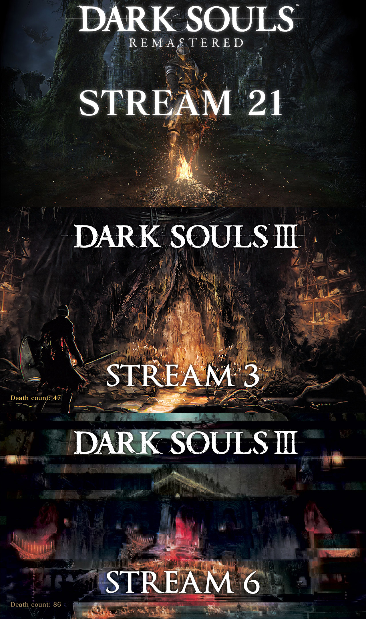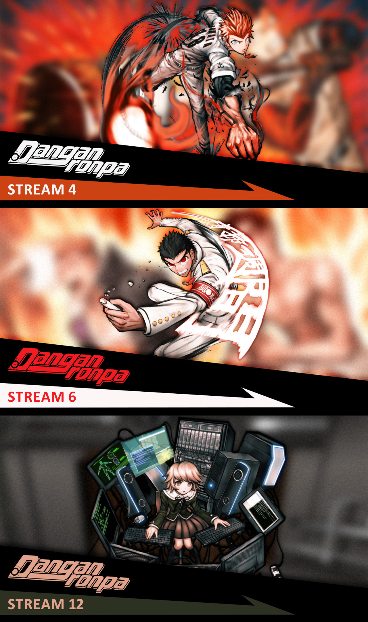 Luckily, each stream turned out to roughly focus on one character, so choosing artwork was easy.