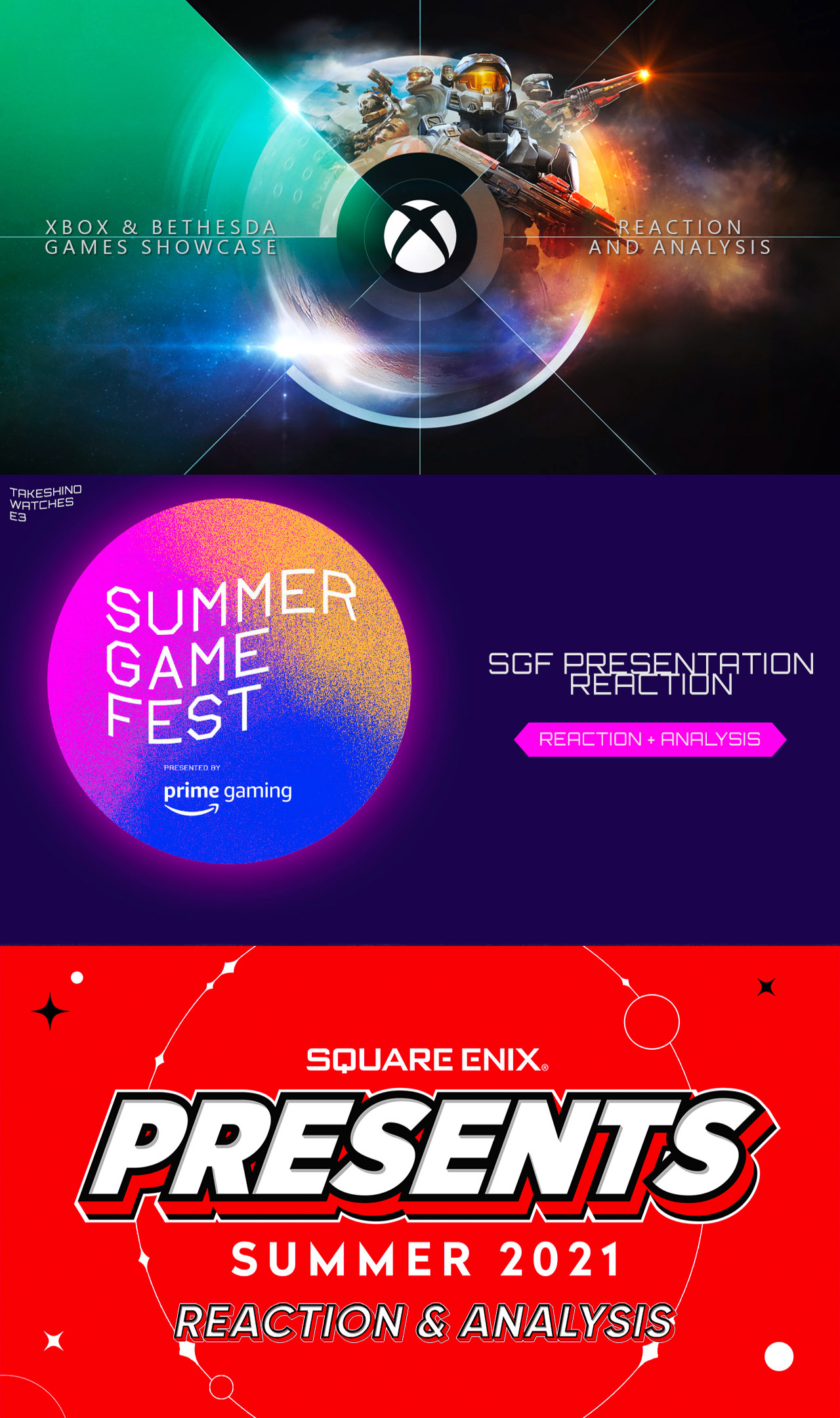 For reaction streams like during E3, I try to stick as close as I can to official promotional art, sticking to the same font or as close as possible.